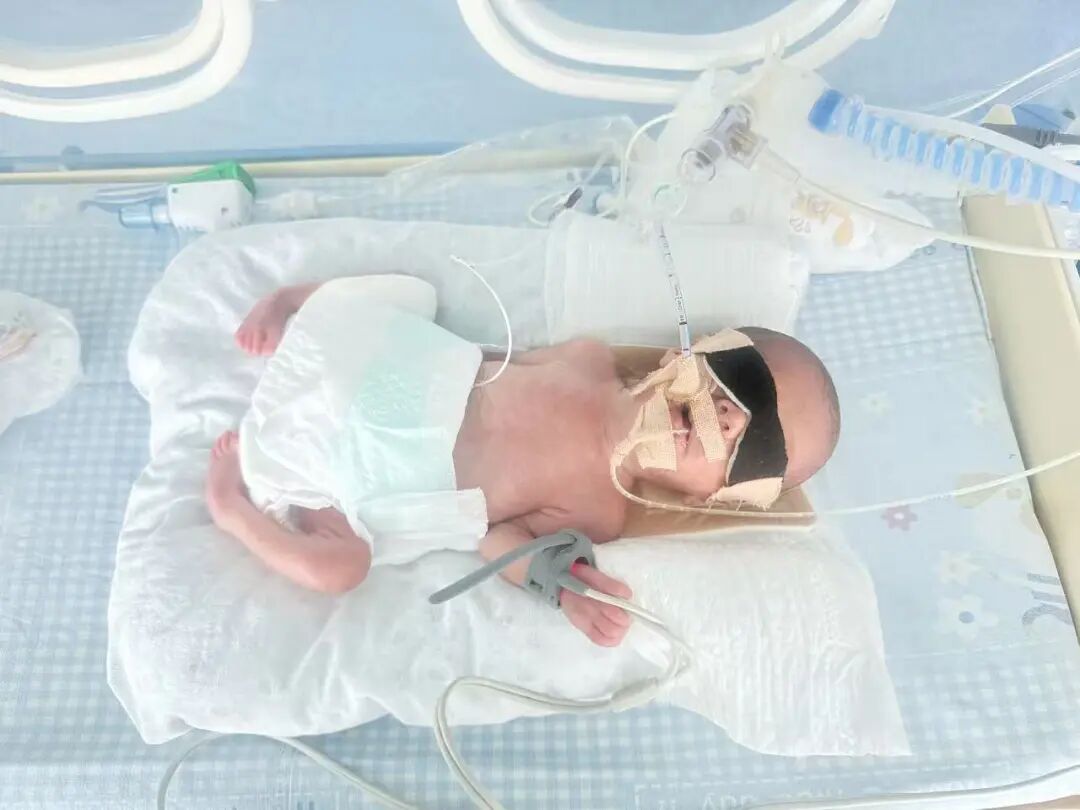 这名28周的早产儿因母亲产前感染、胎盘早剥,比预产期提前了12周出生。出生时,他呼吸微弱,肺、脑、肾等器官发育极不成熟,生命体征极不稳定。这是新生儿科最棘手的情况之一——极低出生体重、器官极度不成熟,稍有不慎,后果不堪设想。
