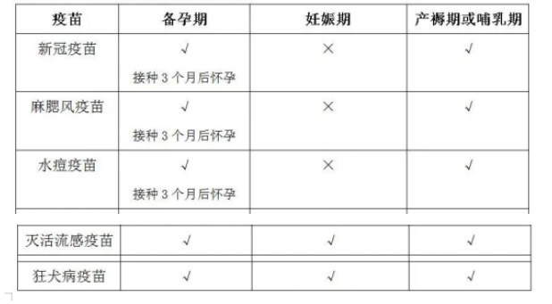 除此之外,还有哪些疫苗是备孕,孕期和产后、哺乳期可以接种呢?