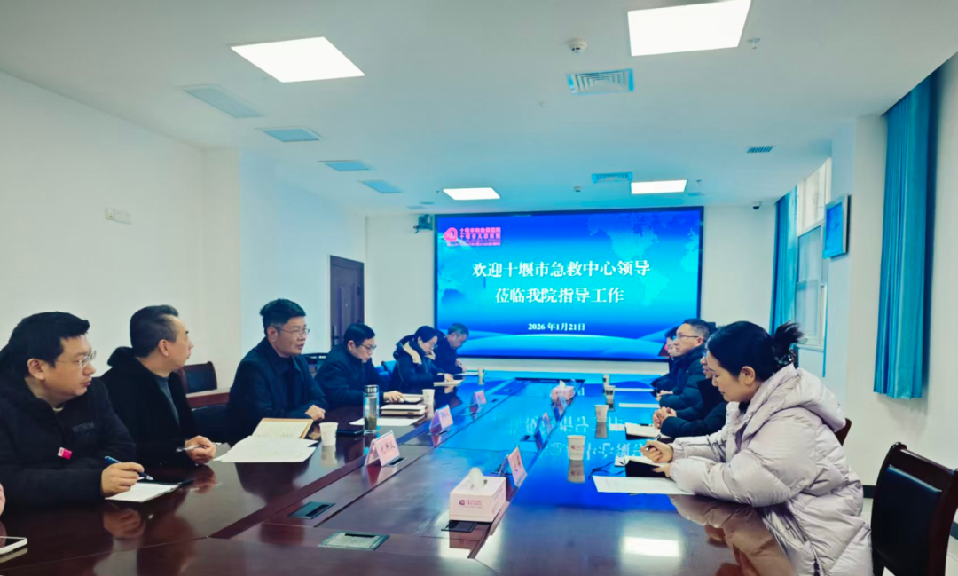 2026年1月21日下午,十堰市急救中心主任朱剑、副主任赵莉、徐磊及宣教科科长傅圣岚一行到十堰市妇幼保健院开展专题调研。院党委书记、院长曾传军,党委委员、副院长何卫东、代洪波及相关科室负责人陪同调研并参加座谈。